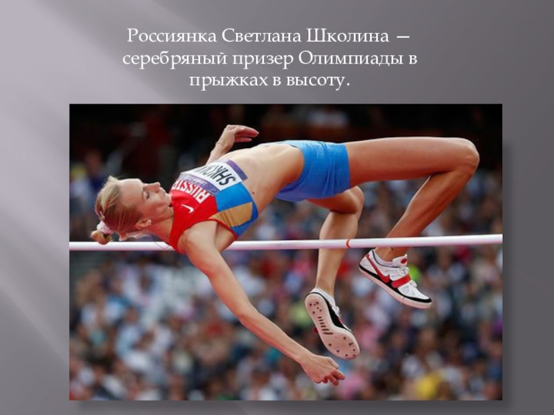 Слайд 3Россиянка Светлана Школина — серебряный призер Олимпиады в прыжках в высоту.