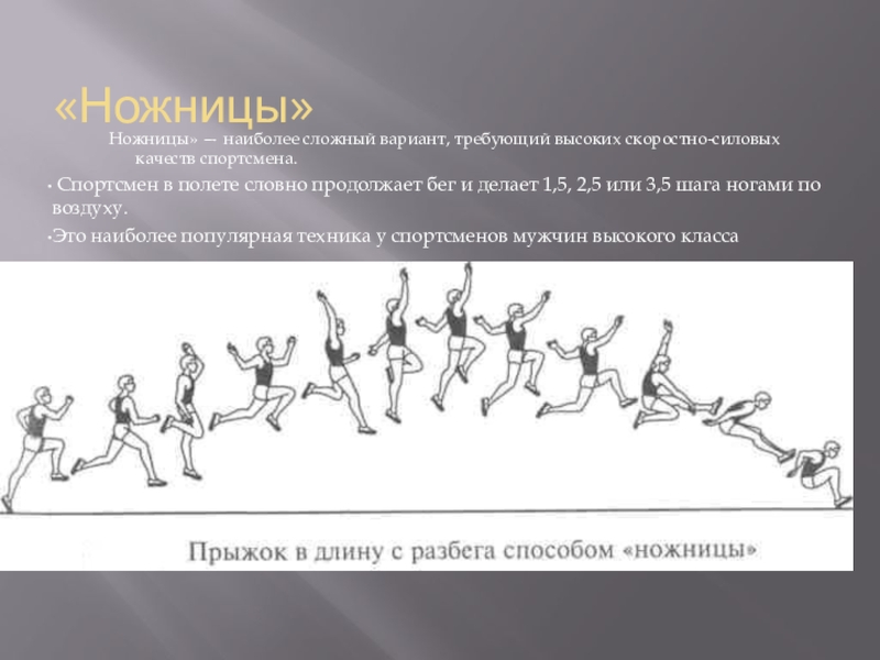 Ножницы» — наиболее сложный вариант, требующий высоких скоростно-силовых качеств спортсмена.