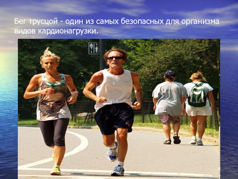 Слайд 28Бег трусцой - один из самых безопасных для организма видов кардионагрузки.