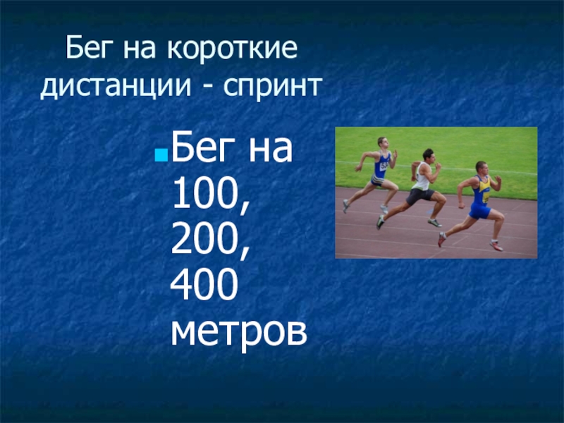 Бег на короткие дистанции - спринтБег на 100, 200, 400 метров