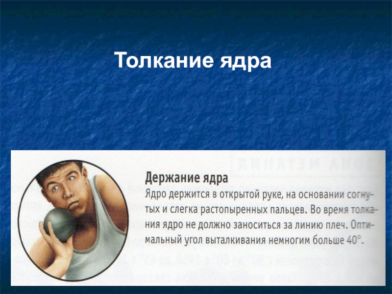 Толкание ядра дисциплина, заключающееся в «толкании» (бросании толкающим движением руки) специального