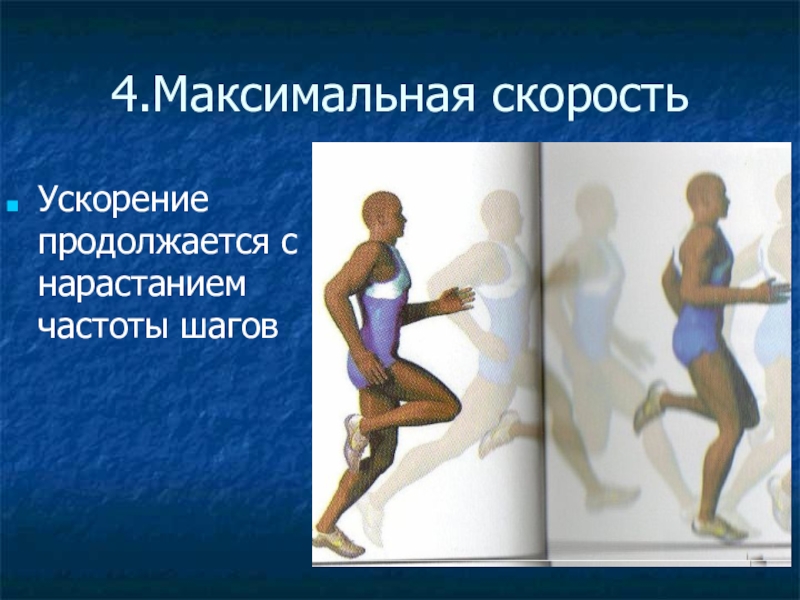 4.Максимальная скоростьУскорение продолжается с нарастанием частоты шагов