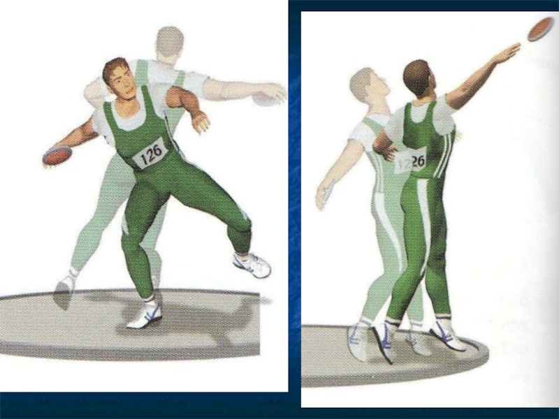 .Рука кладётся на диск и удерживается кончиками слегка растопыренных пальцев. Во время метания сорость вращения удерживает диск