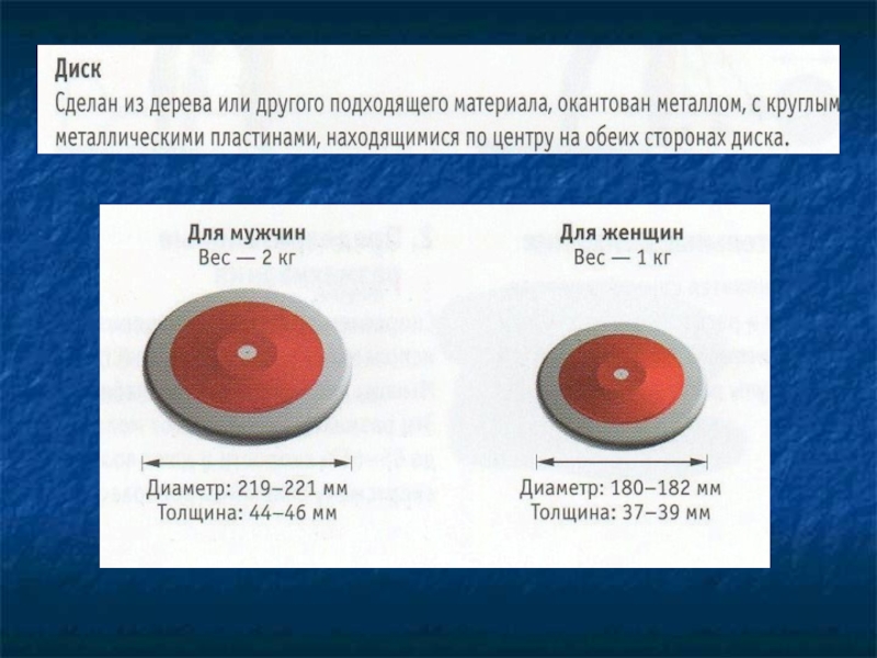диска, на дальность. Относится к метаниям и входит в технические виды легкоатлетической программы. Требует от спортсменов силы и координации движений.