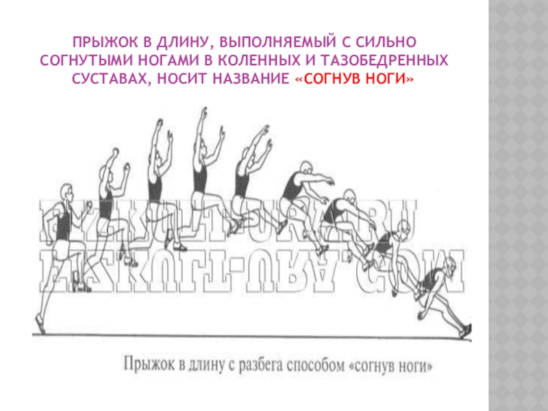 Слайд 16Прыжок в длину, выполняемый с сильно согнутыми ногами в коленных и