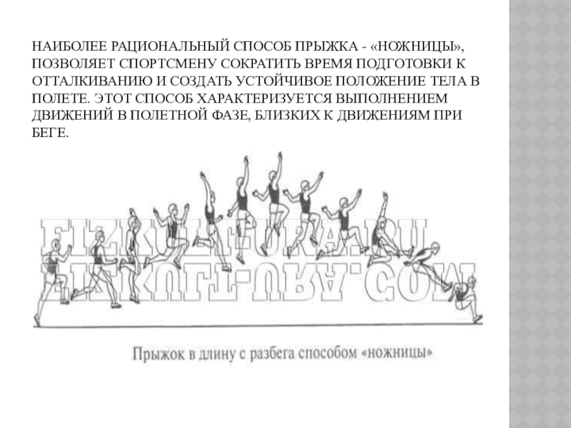 Слайд 18Наиболее рациональный способ прыжка - «ножницы», позволяет спортсмену сократить время подготовки