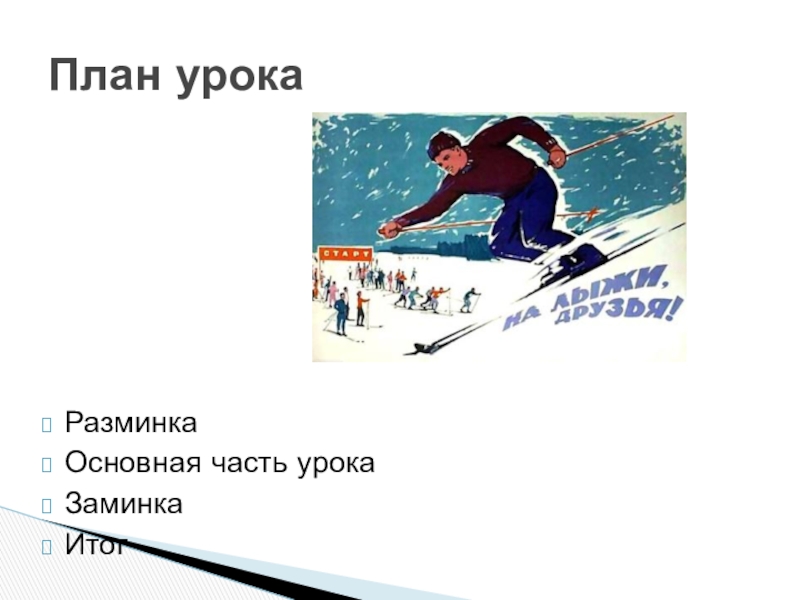 Разминка Основная часть урокаЗаминка ИтогПлан урока