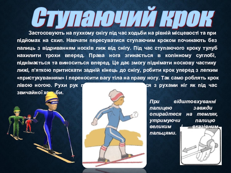 При відштовхуванні палицею завжди опирайтеся на темляк, утримуючи палицю великим і вказівним пальцями.