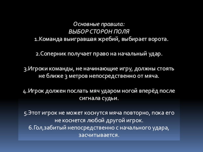 4.Игрок должен послать мяч ударом ногой вперёд после сигнала судьи.