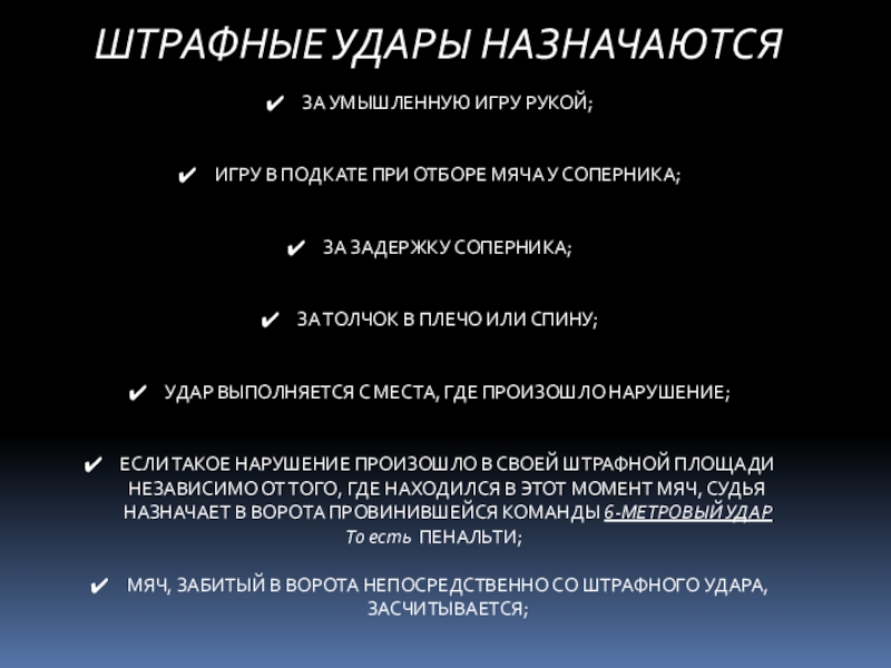 Слайд 9ШТРАФНЫЕ УДАРЫ НАЗНАЧАЮТСЯ