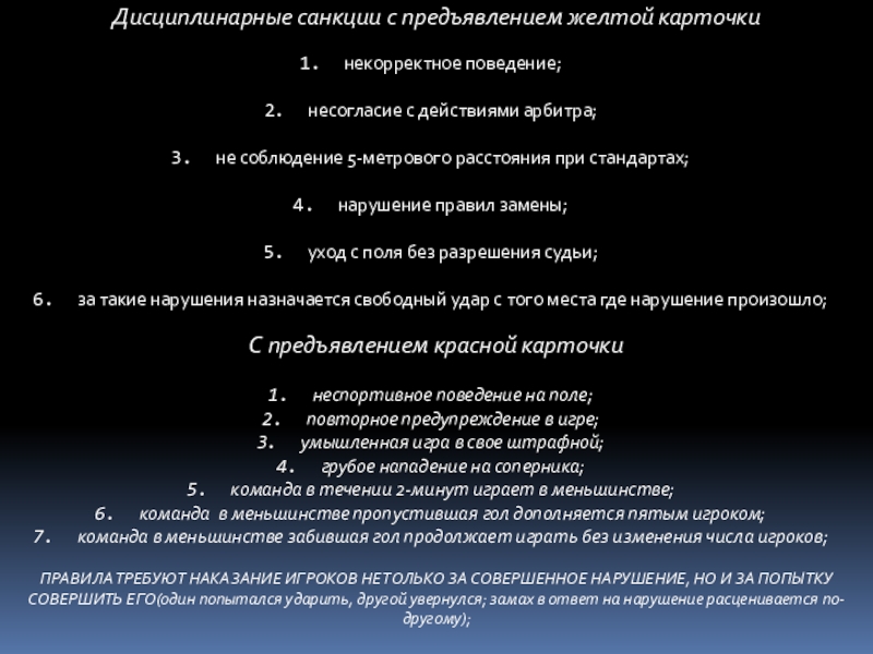 Слайд 11Дисциплинарные санкции с предъявлением желтой карточки