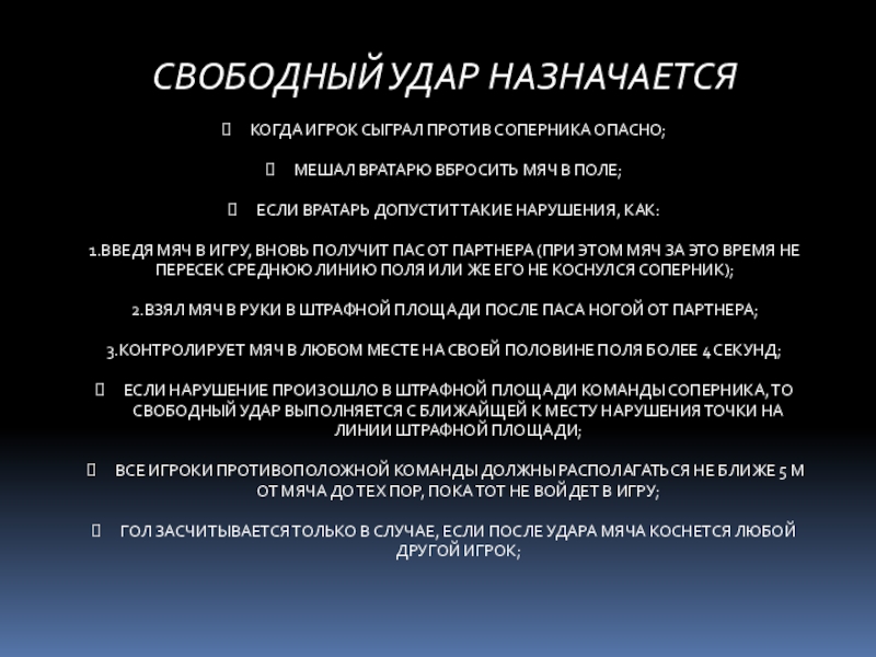 Слайд 10СВОБОДНЫЙ УДАР НАЗНАЧАЕТСЯ
