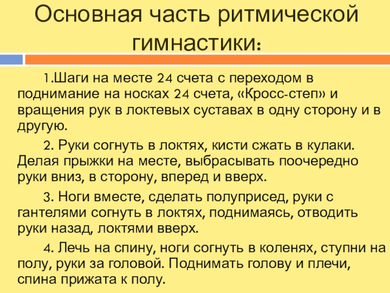 Слайд 9Основная часть ритмической гимнастики: