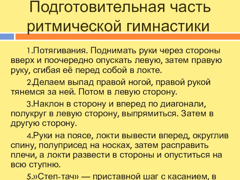 Слайд 8Подготовительная часть ритмической гимнастики:
