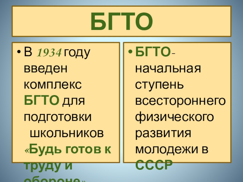 БГТО-начальная ступень всестороннего физического развития молодежи в СССР