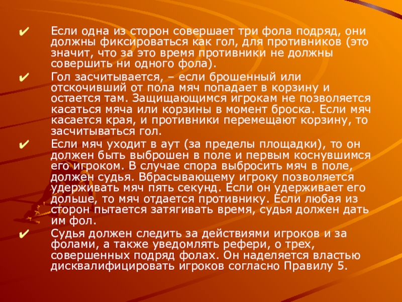 Слайд 11Если одна из сторон совершает три фола подряд, они должны фиксироваться