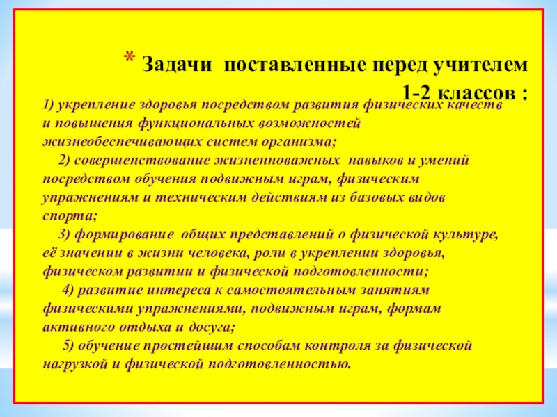 Задачи поставленные перед учителем