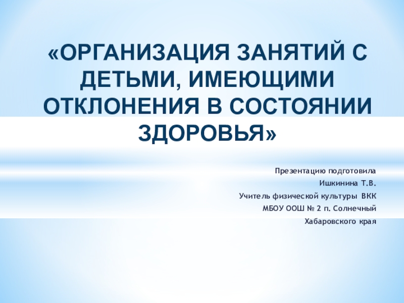 «ОРГАНИЗАЦИЯ ЗАНЯТИЙ С ДЕТЬМИ, ИМЕЮЩИМИ ОТКЛОНЕНИЯ В СОСТОЯНИИ ЗДОРОВЬЯ»