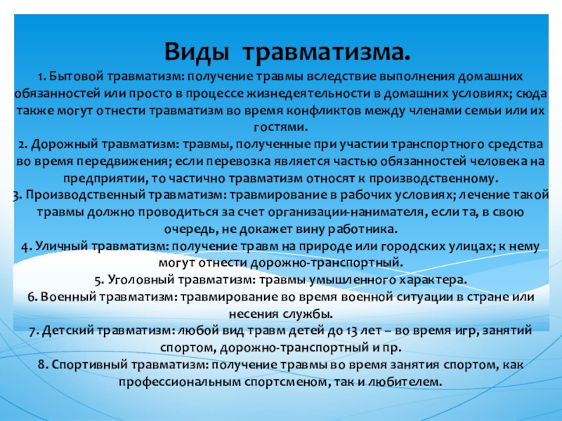 Виды травматизма.