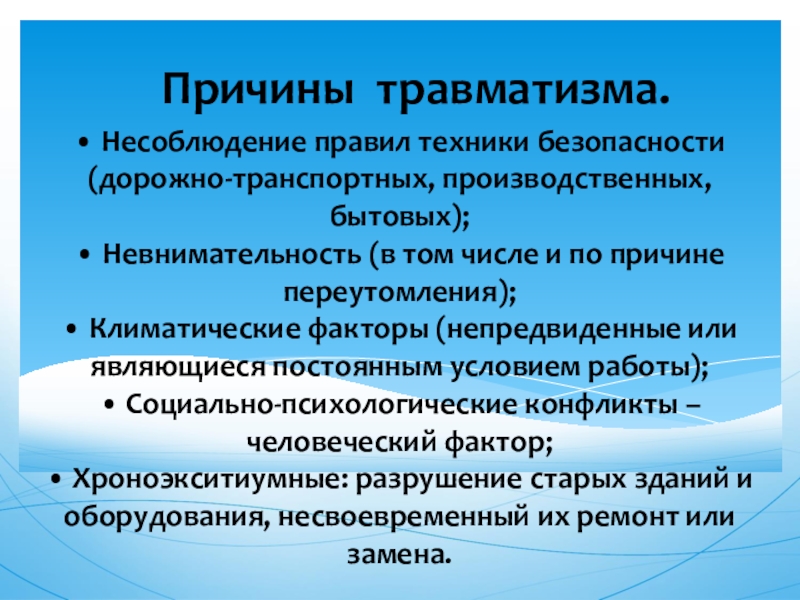 Причины травматизма.