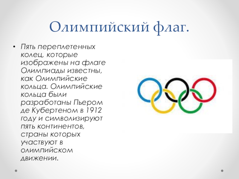 Пять переплетенных колец, которые изображены на флаге Олимпиады известны, как