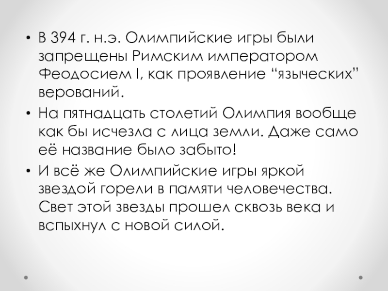Слайд 9В 394 г. н.э. Олимпийские игры были запрещены Римским императором Феодосием