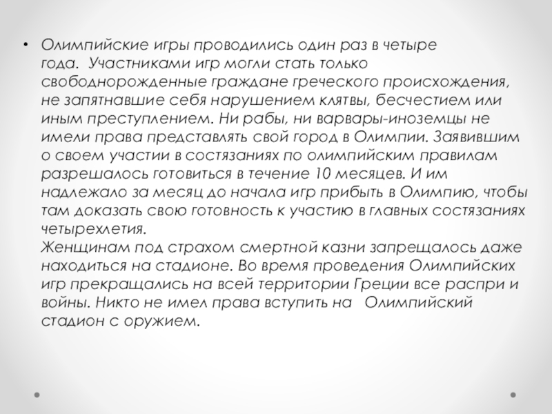 Слайд 5Олимпийские игры проводились один раз в четыре года. Участниками игр могли