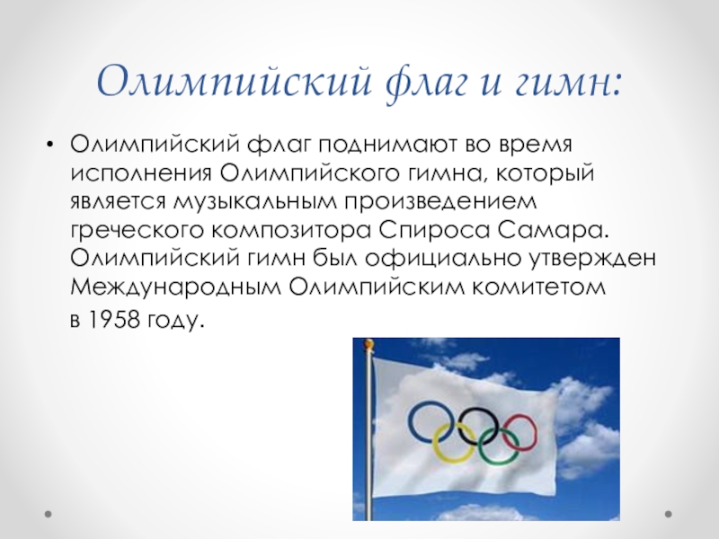 Слайд 14Олимпийский флаг и гимн: