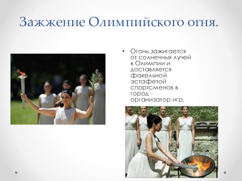 Слайд 7Зажжение Олимпийского огня.