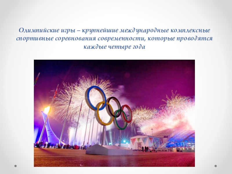 Слайд 2Олимпийские игры – крупнейшие международные комплексные спортивные соревнования современности, которые проводятся