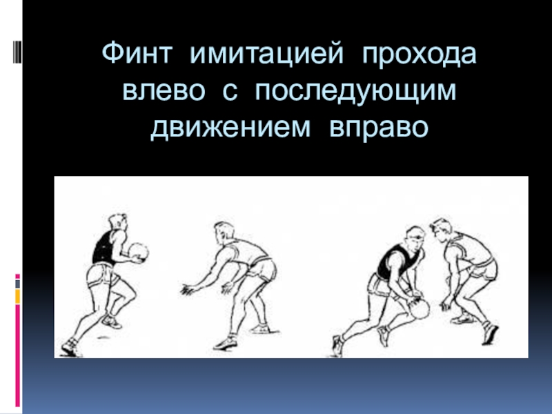 Слайд 5Финт имитацией прохода влево с последующим движением вправо