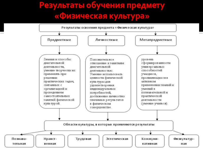 Слайд 4Результаты обучения предмету «Физическая культура»