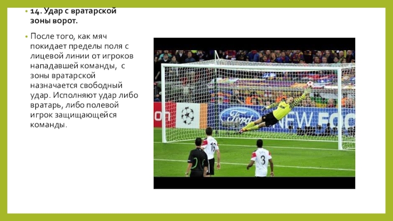 Слайд 1814. Удар с вратарской зоны ворот.