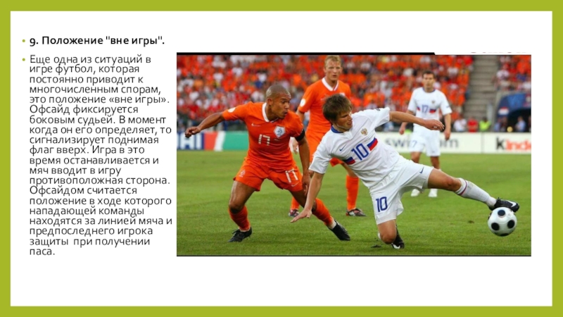 Слайд 139. Положение "вне игры".