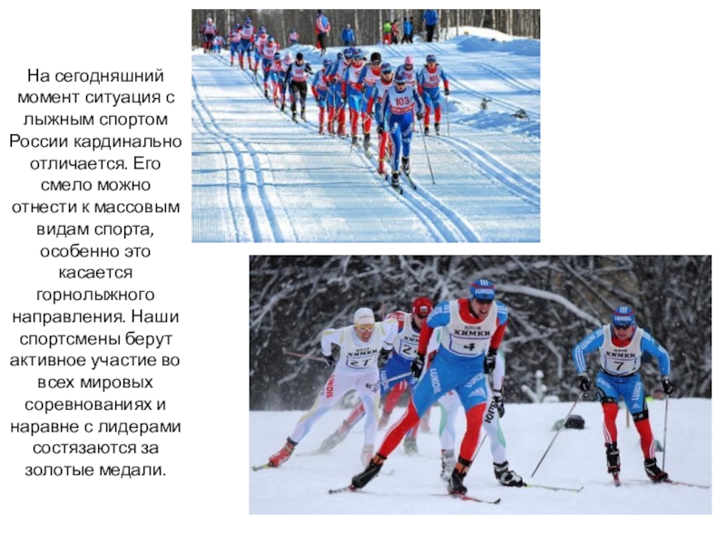 Слайд 9На сегодняшний момент ситуация с лыжным спортом России кардинально отличается. Его