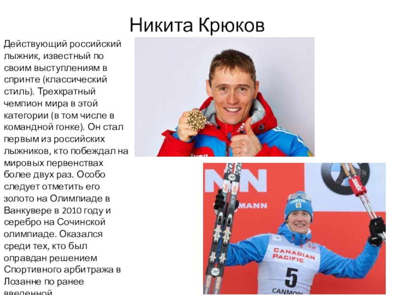 Действующий российский лыжник, известный по своим выступлениям в спринте (классический