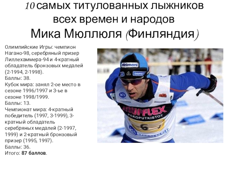 Слайд 1010 самых титулованных лыжников всех времен и народов
