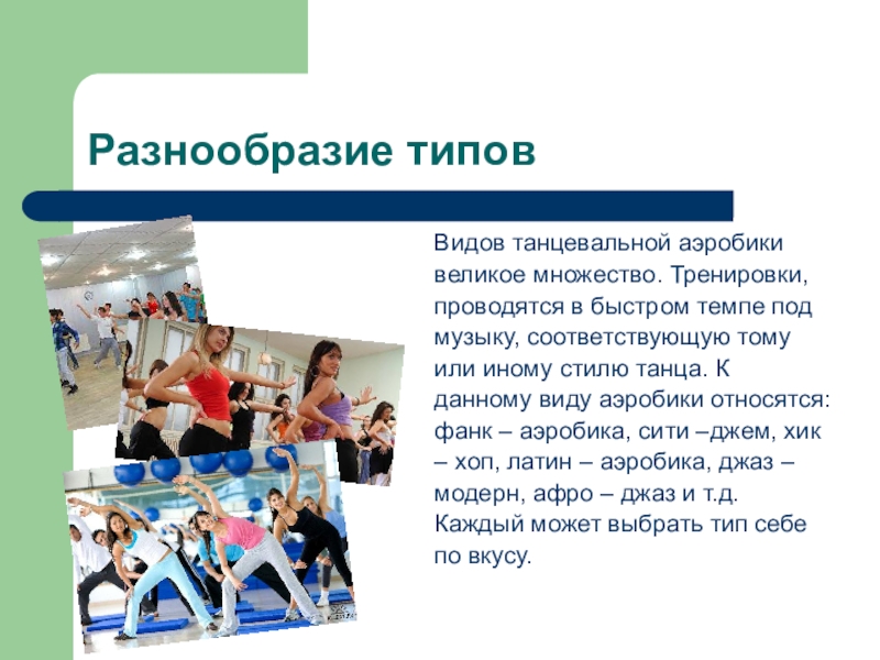 – хоп, латин – аэробика, джаз –