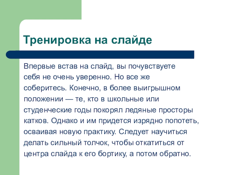 Впервые встав на слайд, вы почувствуете