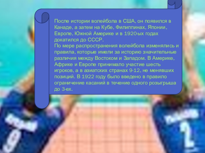 Слайд 6После истории волейбола в США, он появился в Канаде, а затем