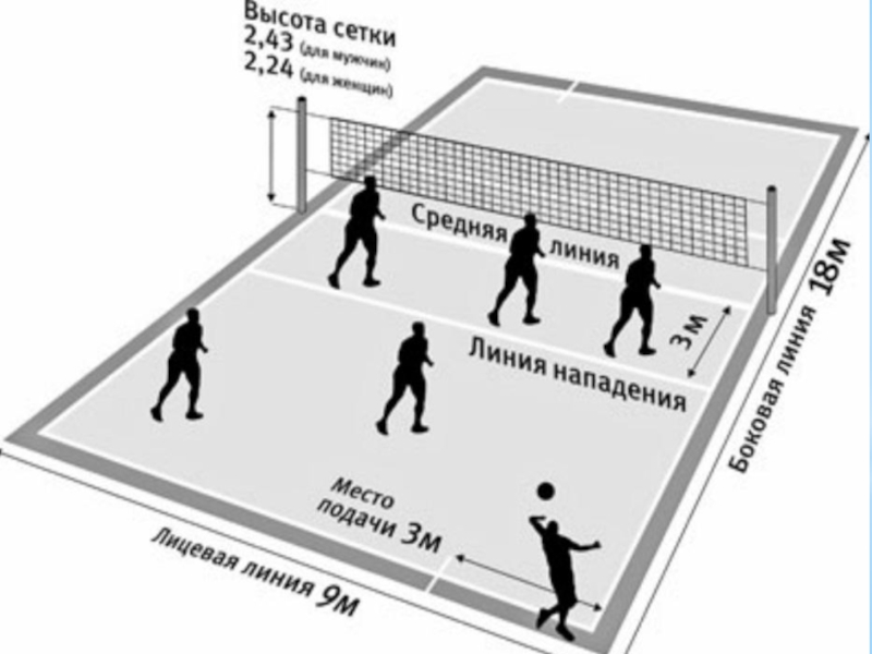 6. Высота сетки для мужчин - 240 см, для женщин - 220 см.