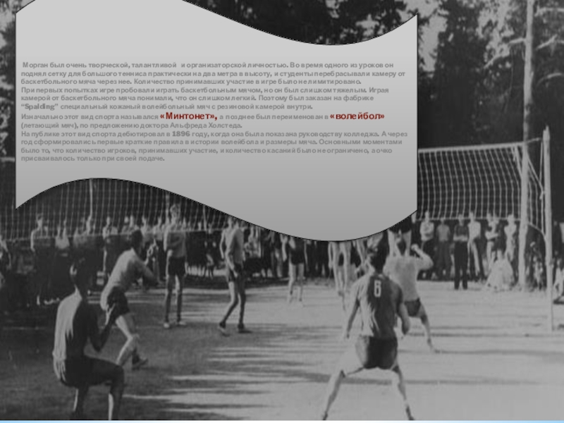 Слайд 5Двадцатилетний американский преподаватель физкультуры Уильям Дж. Морган объявил об изобретении игры