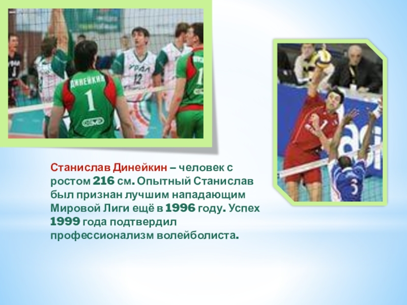 Слайд 16Станислав Динейкин – человек с ростом 216 см. Опытный Станислав был признан