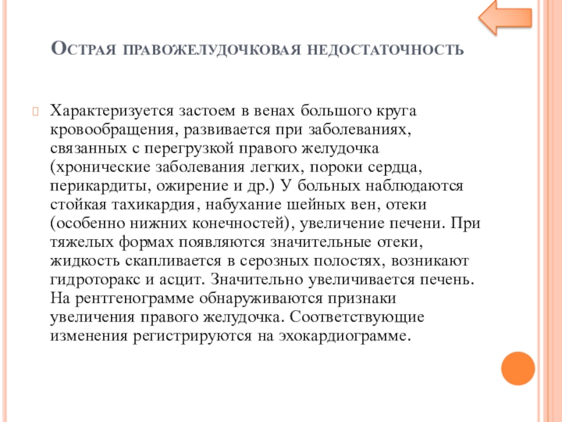 Слайд 13Острая правожелудочковая недостаточность