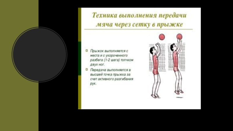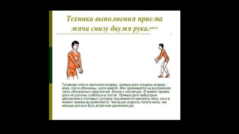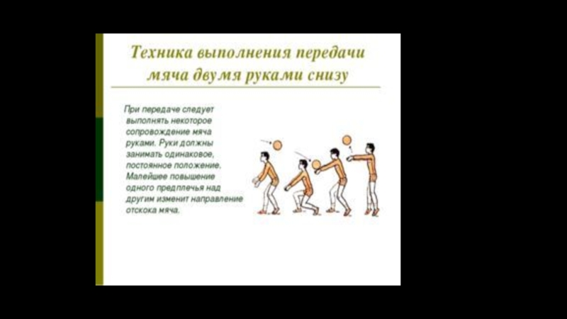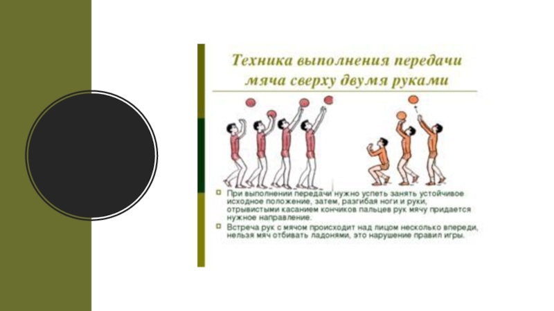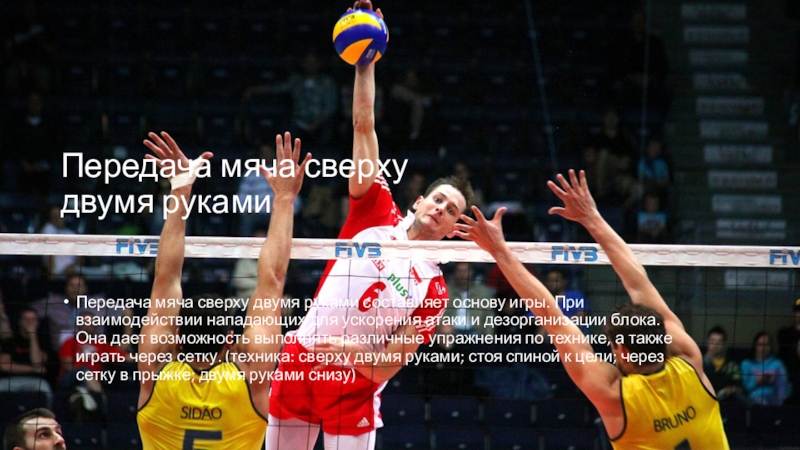 Передача мяча сверху двумя руками Передача мяча сверху двумя руками составляет основу игры. При взаимодействии нападающих для ускорения