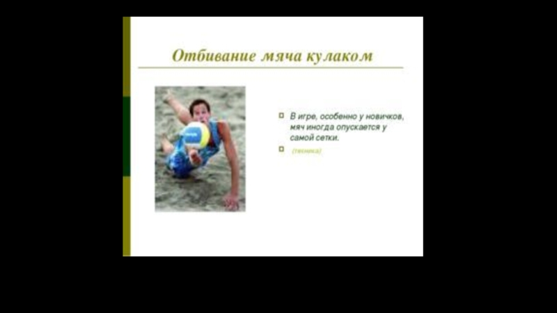 Цель – игры ударами рук направить мяч на сторону соперника и там приземлить.