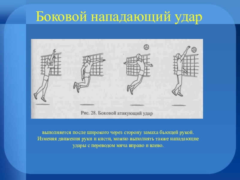 Слайд 16Боковой нападающий удар