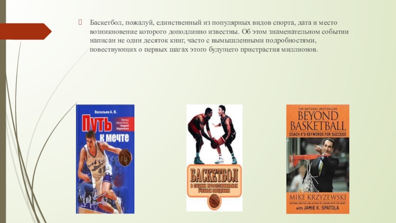 Слайд 2Баскетбол, пожалуй, единственный из популярных видов спорта, дата и место возникновение