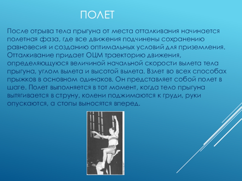 После отрыва тела прыгуна от места отталкивания начинается полетная фаза, где