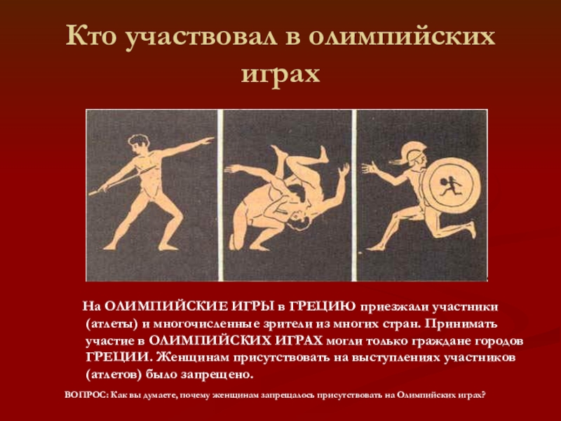 Слайд 5Кто участвовал в олимпийских играх
